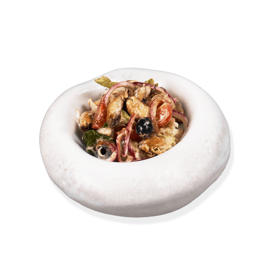 Капуста квашенная, свекла, морковь, картофель, огурцы консервированные, горошек, заправка. 100 гр.