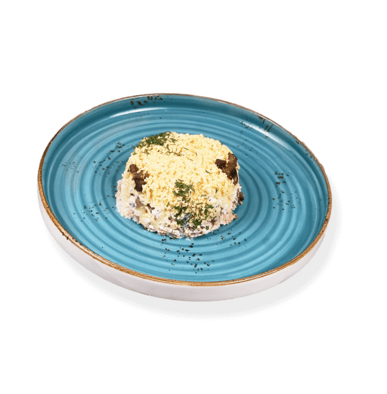 Сельдь филе с/с, картофель, морковь, свекла, лук репчатый, майонез провансаль, соус соевый. 100 гр.